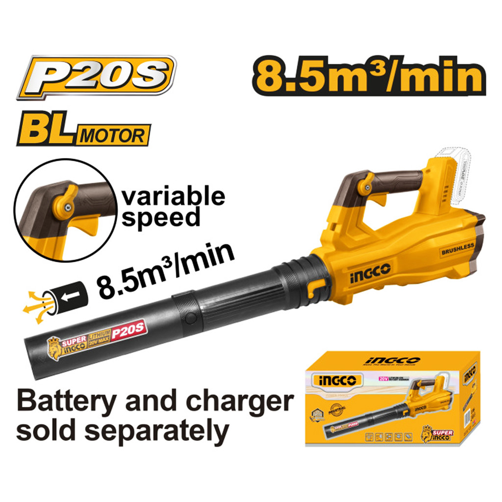 INGCO Akkus lombfúvó szénkefe nélküli 20 V (akku és töltő nélkül)