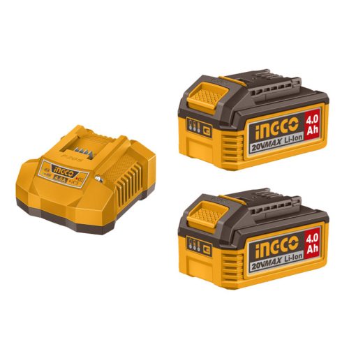 INGCO Akkumulátor és töltő szett 20 V (2 x 4,0 Ah akku + 4,0 A töltő)