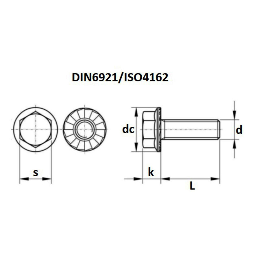 DIN6921 /ISO4162 rozsdamentes acél A2 M5x16 - hatlapú peremes csavar