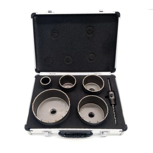 Vídiás koronafúró készlet fémdobozban, az alábbi koronaátmérőkkel: