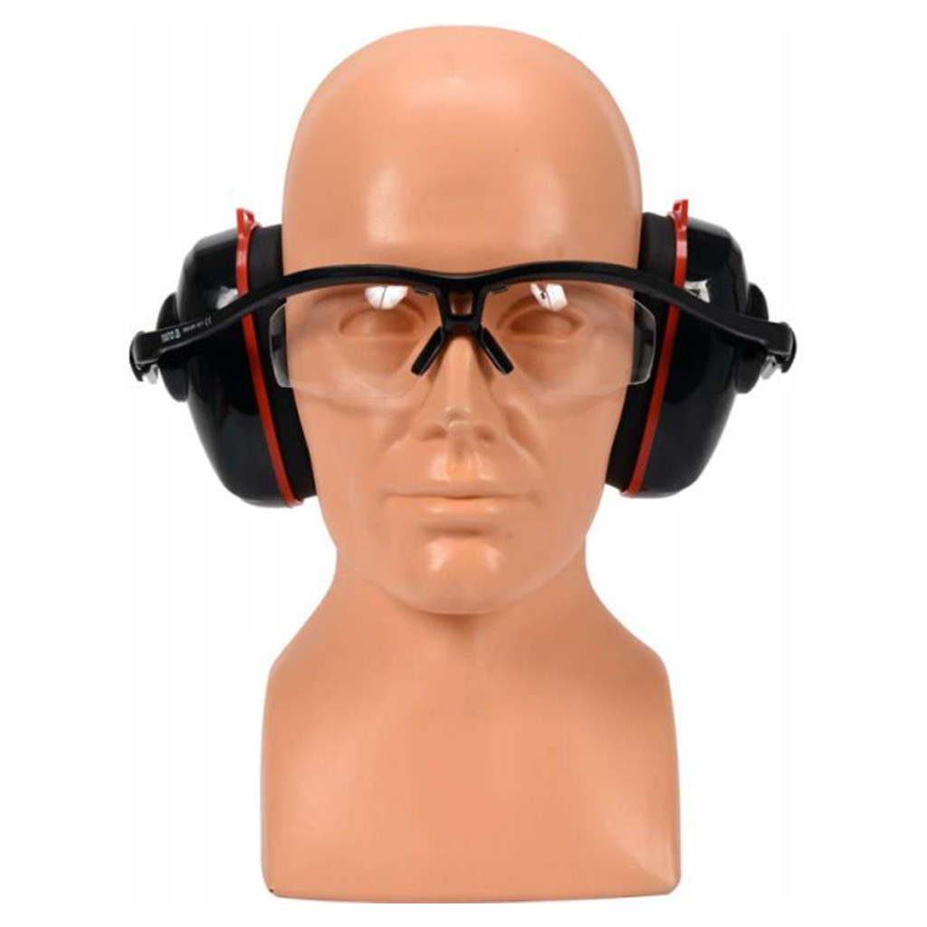 A YT-74636 cserélhető lencséjű, világos színű biztonsági szemüveggel integrált fültok nem csak a hallást, de a felhasználó szemét is védi. A szemvédők állítható gömbcsuklókkal egyben fejpántként is működnek, ami lehetővé teszi a munkavégzést például védősisakban, anélkül, hogy plusz nyomást gyakorolnának a fejre.