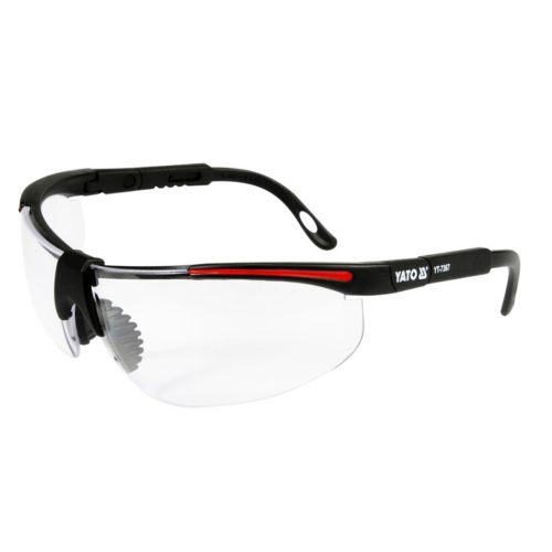 Védőszemüveg YT-7367 modern dizájnnal, mely manuális és gépi munkák, mint például csiszolás, fúrás, vésés stb. során nyújt védelmet a szemeknek.