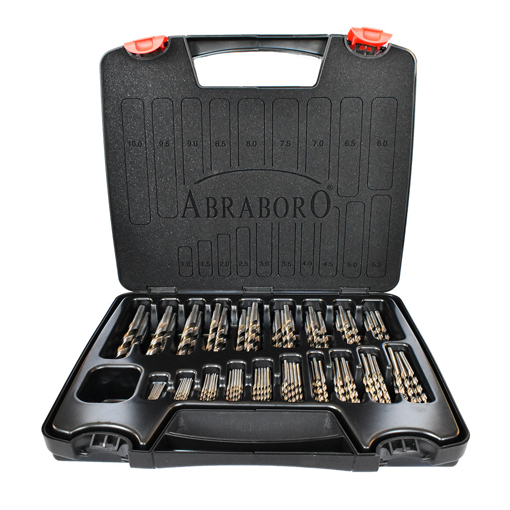 Abraboro HSS-CO fémfúró készlet, 170 részes (D 1,0 - 8,0 mm x 0,5 -> 10 db  D 8,5 - 10,0 mm x 0,5 -> 5 db)