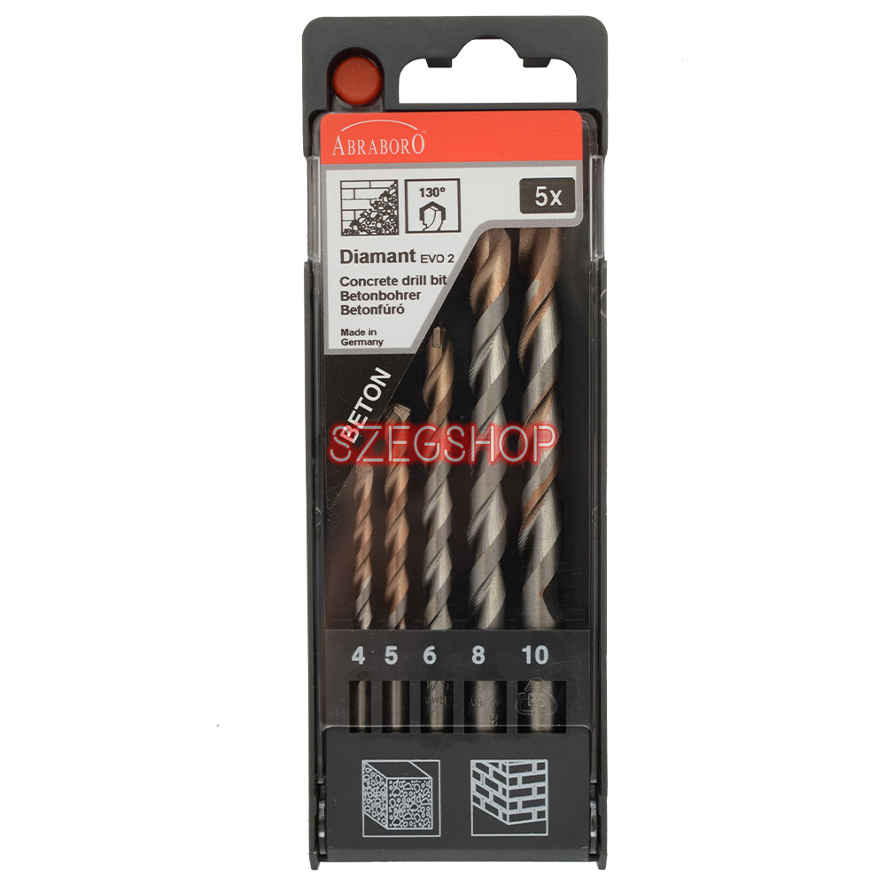 Abraboro kőzetfúró készlet 5r. hengeresszárú (4-10mm-ig) betonfúró Diamant EVO 2